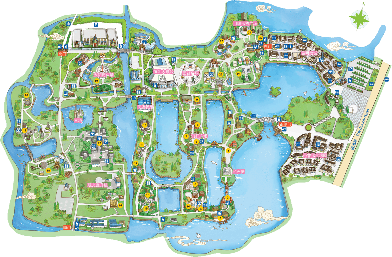 哈尼族是我國西南邊疆歷史悠久的農耕民族,人口約130余萬,主要居住在云南省紅河、元江、瀾滄江流域的無量山區(qū)和哀牢山區(qū)。哈尼寨占地15畝,展現(xiàn)了最具有代表性的蘑菇房和愛尼母子房,日月廣場;有表現(xiàn)哈尼族關于魚生萬物傳說的大型浮雕,有表現(xiàn)哈尼族遷徙傳說的圖騰柱;有體現(xiàn)生產生活的磨房、龍巴門、秋千場、梯田;寨神樹和祭石表現(xiàn)了哈尼族“萬物有靈、多神崇拜”的宗教信仰。哈尼傳統(tǒng)的節(jié)日有“年首扎勒特”、“苦扎扎”...